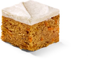 Vatten, socker, morötter, rapsolja, rismjöl, florsocker (socker, potatisstärkelse), creme cheese laktosfri (Pastöriserad GRÄDDE, SKUMMJÖLK, laktosreducerat MJÖLKPULVER, stabiliseringsmedel (E440, E412), salt, konserveringsmedel (E202), syrningskultur, enzym (laktas).), vegetabilisk olja (raps), HELÄGGSPULVER, vegetabilisk olja (kokosnöt), förtjockningsmedel (modifierad potatisstärkelse), fullhärdad rapsolja, stabiliseringsmedel (E464, E466, E412, E415), bakpulver (E450i, E500ii), kanel, vaniljarom (Sötningsmedel E420, vatten, etylalkohol, aromer.), Bakpulver: (E450, E500, majsstärkelse), emulgeringsmedel (E475 (veg. fett), E481 (veg. fett)), rörsockersirap, salt, modifierad majsstärkelse, citronpuré, arom, invertsocker, arom (vanillin), emulgeringsmedel (E471), naturlig arom, stärkelse, surhetsreglerande medel (E330). 14% Morot ursprung Sverige.