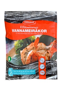 17-18 styckfrysta vitlöksmarinerade räkor per påse