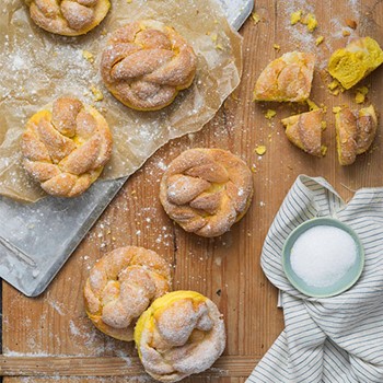 Per 100g portion innehåller Saffransknut 50g kolhydrater tillsammans med 8.4g fett.