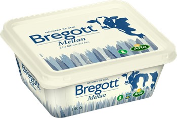 Bregott® Mellan är en lite mjukare, lite mer bredbar matfettsblandning. Ett smakrikt alternativ med god smak, men med lägre fetthalt. Grädden finns med för den goda smakens skull och rapsoljan gör det lättare att bre på brödet. Bregott® Mellan gör sig allra bäst på smörgåsen, men passar också att steka i och baka med. Symbolen med den blågula gräddkannan garanterar att produkten är gjord på 100 procent svensk grädde. Produkten är nyckelhålsmärkt.