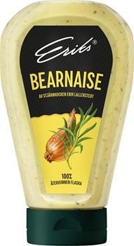 Eriks Bearnaise har en lätt syrlig smak av fransk dragon och dragonvinäger. Eriks Bearnaise passar lika bra till grillat (eller stekt) kött, såsom fläsk, nöt och kyckling som till grillade grönsaker och allt där emellan. Testa gärna till grillad entrecôte med finriven pepparrot, pommes frites och tomatsallad.