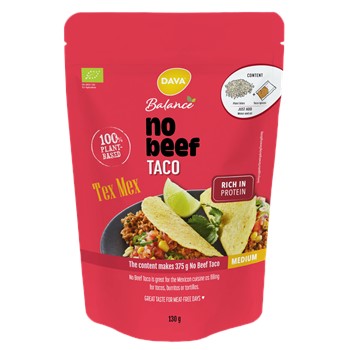 Per 100g portion innehåller No Beef Taco 26g kolhydrater tillsammans med 4.5g fett.