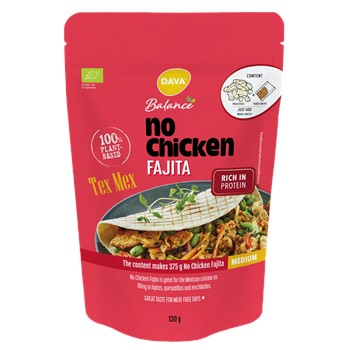 Per 100g portion innehåller No Chicken Fajita 26g kolhydrater tillsammans med 4.3g fett.
